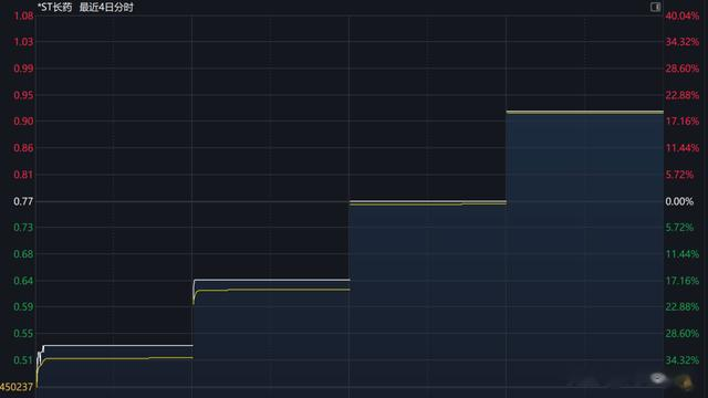 数据显示,自1月20日以来,*ST长药(300391)已经连续四个交易日录得涨停板,期间累计涨幅高达109.09%……